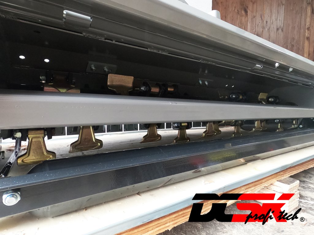 Rendkívül robusztus konstrukcióval, speciálisan megerősített ferde fogaskerékkel rendelkezik. A 28 speciálisan edzett, 0,8 kg-os, nagy teherbírású penge sorban van elhelyezve a hajtótengely körül, hogy a fű aprítása minimálisra csökkenjen. A fűnyírónak nagyon nehéz hátsó görgője és üresjárata van. A vágási magasság a felső húzórúddal és az oldalsó futókkal állítható. A fűnyíró elején lévő oszcilláló, horganyzott kések megakadályozzák a kövek kiszabadulását. A fűnyíró egy hárompontos vonószerkezettel van a traktorra függesztve (kat. I.). A traktornak legalább 30 lóerősnek kell lennie.