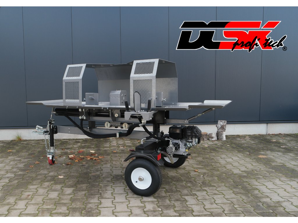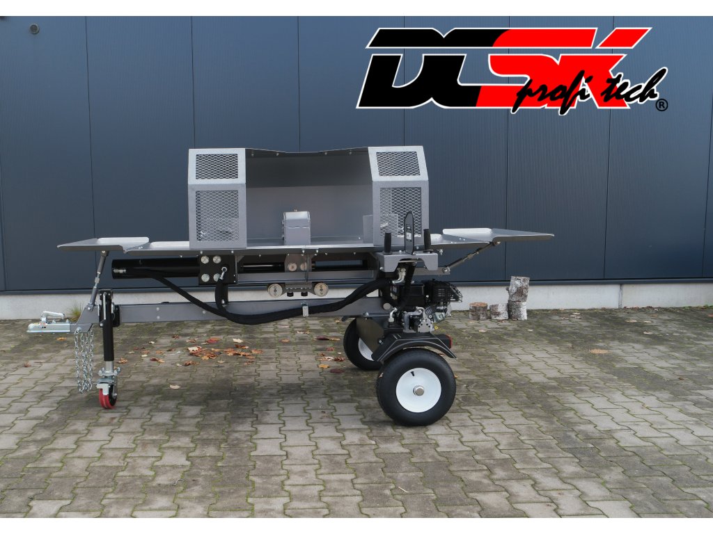 A Jansen® HS-20DS55pro nem csupán hatalmas teljesítményt kínál, hanem jól átgondolt dizájnt is. A kompakt, vízszintes kialakítás ergonomikus és biztonságos munkavégzést tesz lehetővé. Mindössze kb. 110 cm szélességével (a tárolóasztallal együtt) a hasító könnyen szállítható – akár utánfutón, akár a kormányrúd segítségével a megfelelő helyre manőverezve.