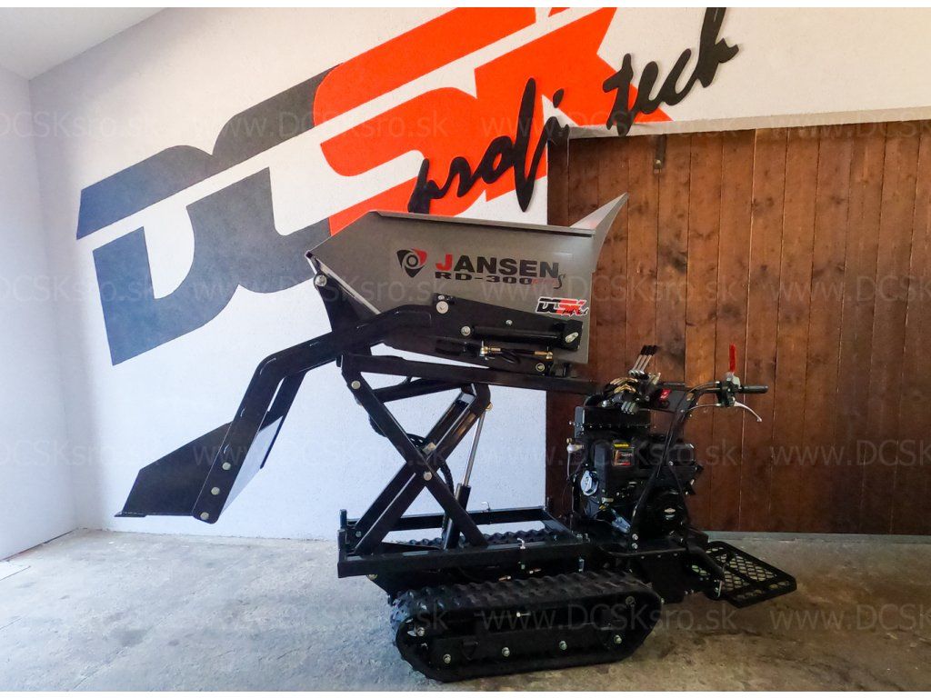 A Jansen RD-300proS lánctalpas önrakodó dömper a Jansen RD-300pro bővítése, és a hidraulikus magassági billenő rendszer mellett hidraulikus önrakodó funkcióval is rendelkezik.