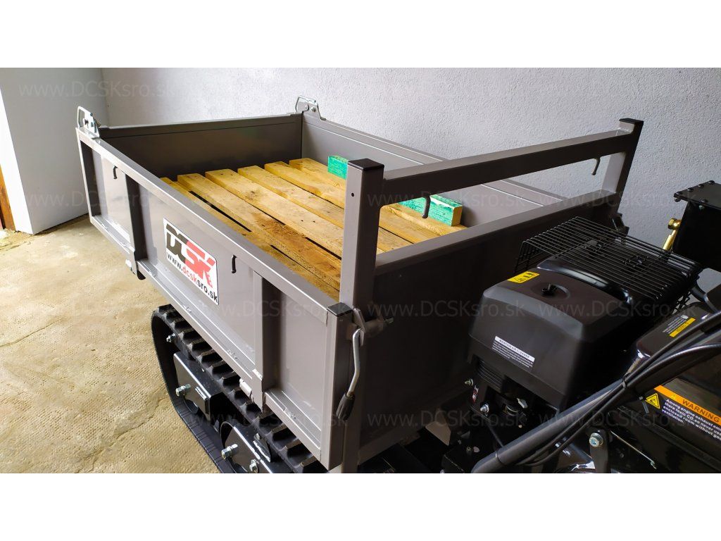 A dömper csuklós oldalfalú karosszériával van felszerelve, amely teljesen szétszerelhető, hogy a szerkezetet szállítóplatformként lehessen használni. Még az eurós raklapok (1 200 x 800 mm) is könnyen elférnek az ágyon - még csukott állapotban is!