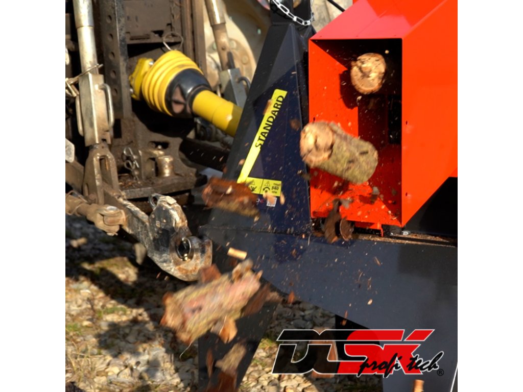 Henger alakú vágórendszer, 6 edzett acél kés, max. ágátmérő 14 cm, traktor teljesítmény 33,5/59,6 kW, tömeg 290 kg.