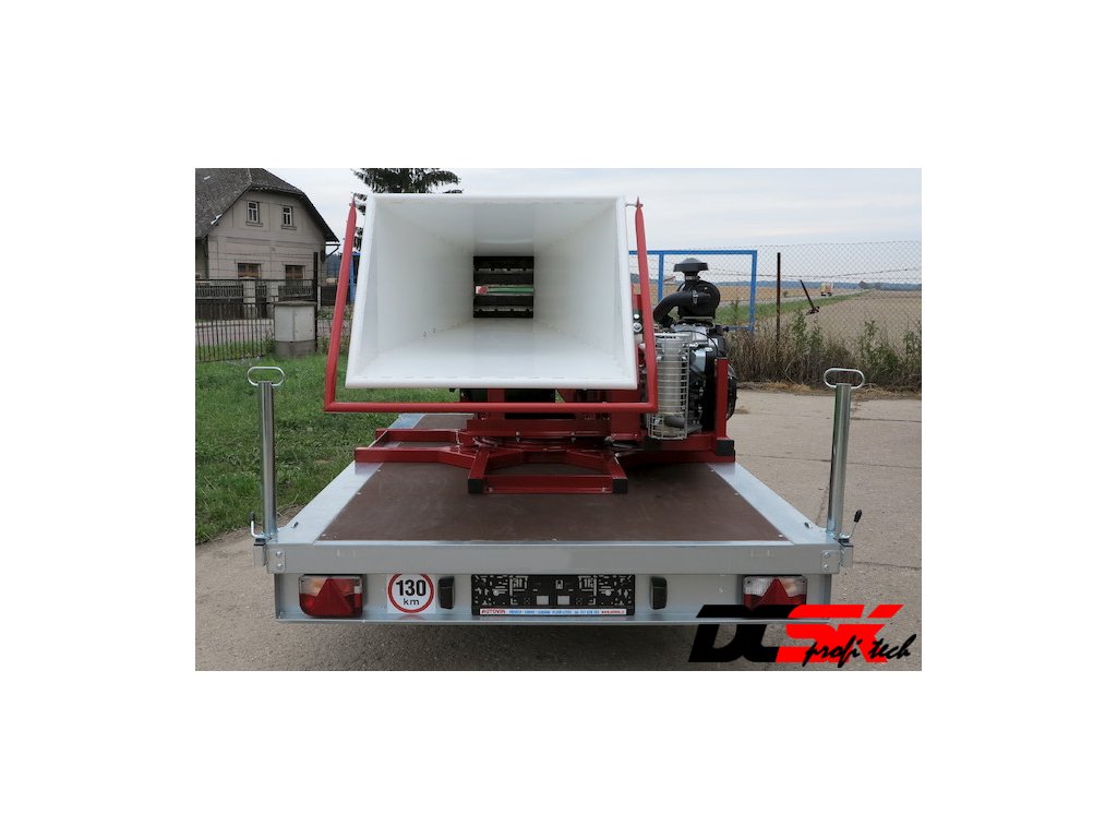 Az aprítógépet egy rendszámtáblával ellátott fékezett pótkocsira szerelik, amely elöl egy kihúzható kerékkel, hátul pedig két állítható lábbal rendelkezik. A pótkocsi a vontatójármű ISO 50-es gömbjéhez csatlakozik. A pótkocsi össztömege az aprítógépet is beleértve 1300 kg. A gép súlypontja kissé a tengely előtt van. A 3 500 kg megengedett legnagyobb össztömegű járműszerelvényhez elegendő a B csoportos engedély (a vontatójármű megengedett legnagyobb össztömege 2 200 kg).